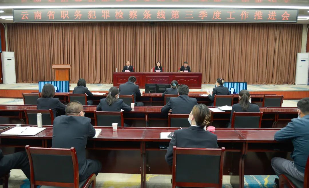 10月31日,云南省检察院召开全省职务犯罪检察条线第三季度工作推进会。会议以视频形式召开,省检察院第三检察部全体人员在主会场参会,各分、州(市)、县(区)检察院有关负责同志在分会场参会。