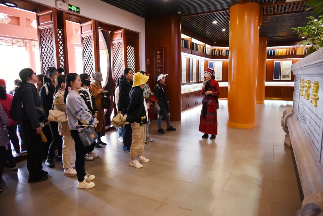 走进国药博览园,仿佛穿越了千年时光。在岐黄之术馆,凝视着伏羲、神农、黄帝的青铜雕像,触摸着《黄帝内经》竹简复刻本,深刻感悟着大医精诚的济世情怀;滇南本草馆里,1800瓶保鲜药材标本与320盆水培活体药材相映成趣,特色药材背后的传奇故事,让大家惊叹于中药文化的神奇魅力;中华医史馆中,通过一字一画、群雕和历代医药器具,沿着历史脉络探寻着中医药发展的密码,感受着医者仁心的永恒传承。在黑石箐石林,27个中医典故景点与喀斯特地貌交相辉映,独特的中药材生态环境,让大家在曲径通幽处,身临其境地感受中医药文化的博大精深和无穷魅力。