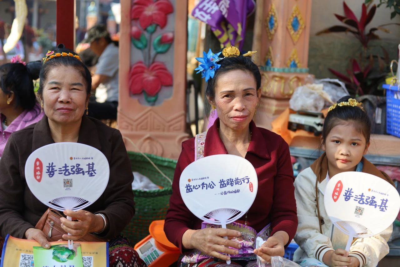 随着音乐的响起,一场浪漫之约拉开了序幕。从傣陶、傣纸、贝叶经制作等非遗代表性项目展示的非遗文创展示区,到集结着勐罕镇民族风情与自然风光的优秀摄影作品展区,再到村民们售卖的土特产品、版纳风味特色小吃的赶摆街,都充满着浓浓的节日氛围。而在文化节的一角,景洪市检察院的普法摊位前同样热闹非凡,成为了一道独特的风景线。