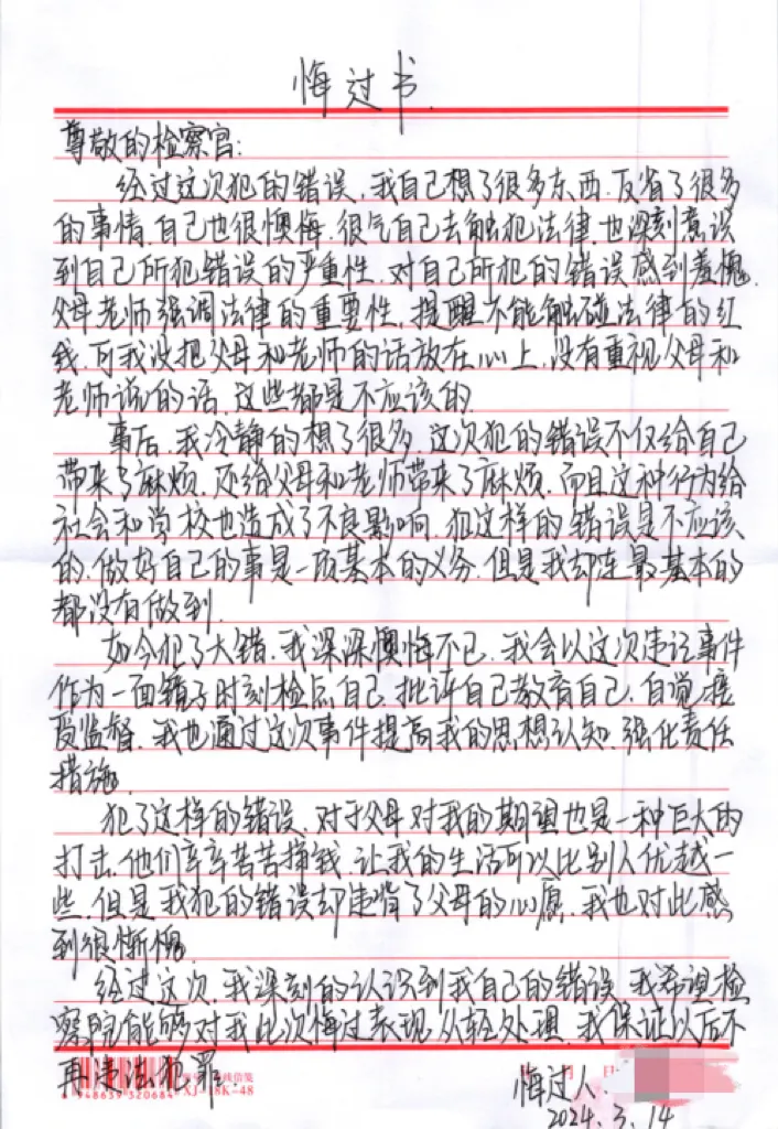 “我深刻认识到自己的错误,感谢检察机关给予改过自新的机会,今后一定遵纪守法、努力学习,做一个对社会有用之人。”“我的行为不仅给个人、家庭带来麻烦,也给学校、社会造成不良影响,我对自己的行为深感愧疚和懊悔,今后必将积极改正。”梅某某、李某某在训诫会上真诚悔过并作出承诺。目前,二人已重新返回校园接受教育。