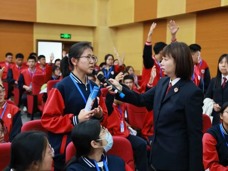同学们认真思考,纷纷举手踊跃参与,现场气氛热烈活泼,60余名答对的同学获赠了精美的检察小熊、笔记本、文具袋等小礼品。此外,法检干警们还向同学们发放了拒绝酒驾、未成年人保护、反诈等相关法律知识手册和宣传产品,用心筑牢护航成长的法治屏障。