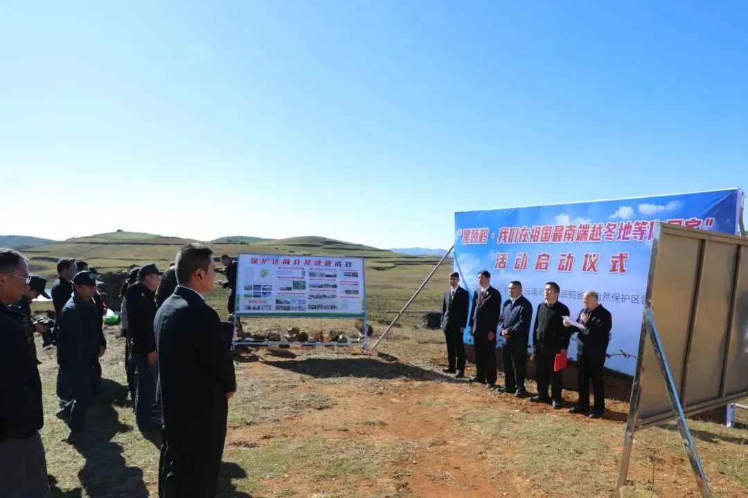 启动仪式上,寻甸黑颈鹤管护局局长马兴祥通报保护区建管情况,寻甸县检察院检察长罗代平通报公益诉讼助力黑颈鹤保护情况。