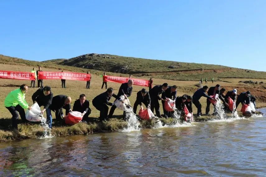 在保护区“大湾塘子”和“五大连池”,参加活动的人员为越冬黑颈鹤投放玉米及3800余尾约300公斤滇池高背鲫,为历经漫长而遥远行程迁徙至寻甸越冬的黑颈鹤补充丰富的食物,以便他们在越冬期间觅食以补充营养和体力。活动期间还组织参加人员调研了保护区湿地保护成效。