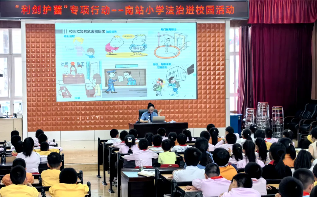 近日,昆明铁路运输检察院刑事检察部检察官走进南站小学,以法治小游戏为切入点,为150名四至五年级小学生就预防校园欺凌等内容上了一堂精彩的法治课。