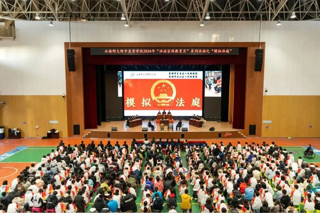 为深入贯彻落实“利剑护蕾”专项行动,提醒在校学生警惕电信网络诈骗,远离校园欺凌,全面提高安全防范意识。近日,昆明市呈贡区检察院联合西山区检察院、云南师大附中呈贡学校开展“模拟法庭”进校园活动,学校800余名师生参与。