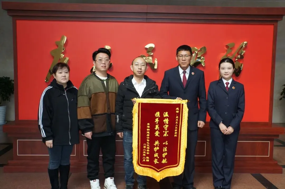 近日,昆明市盘龙区东华街道办席子营社区的工作人员将一面写有温情守以法护航 携手关爱 共护成长 的锦旗送至盘龙区检察院,以感谢检察机关在办理困境未成年人小丽(化名)案件中展现的专业力量与司法温情。