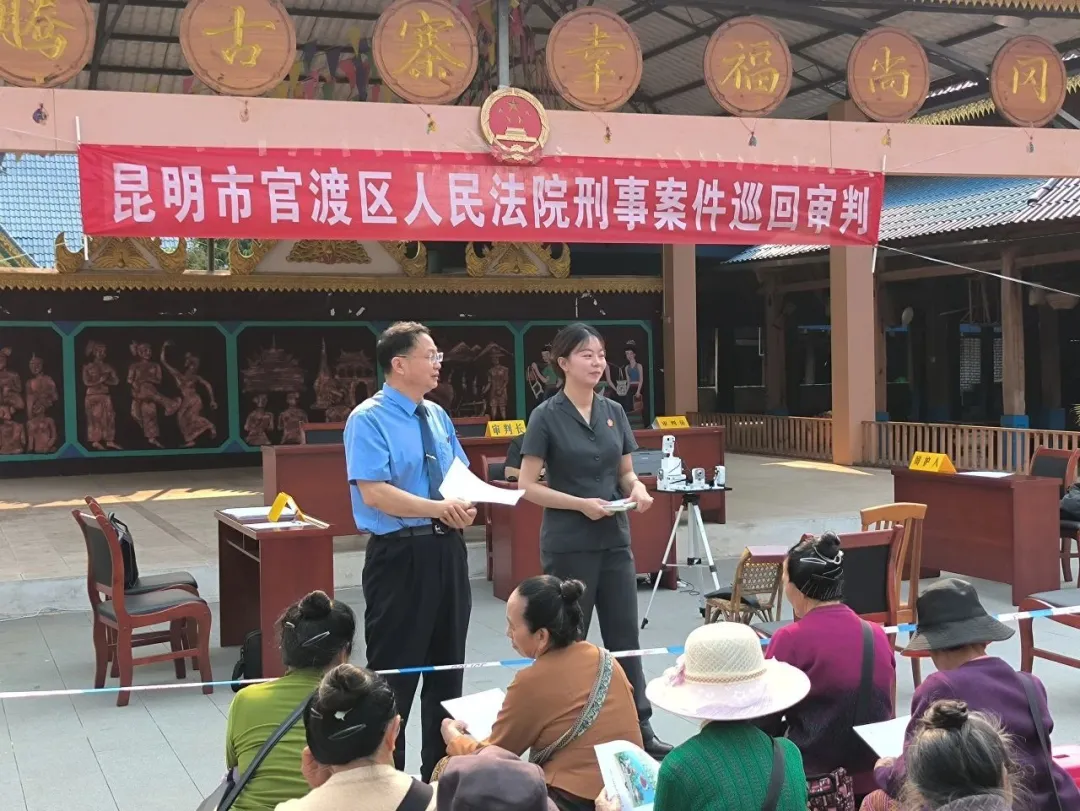 为进一步将检察法治力量精准辐射至磨憨少数民族村寨,近日,磨憨检察室联合昆明市官渡区法院刑事审判庭,将庭审现场到了磨憨镇尚岗村,对被告人周某某涉嫌危险驾驶罪一案开展巡回审判。尚岗村村民到现场沉浸式旁听案件庭审,零距离上了一堂警示教育课。公安办案人员也来到现场,在旁听的过程中进一步深化对司法流程的认识。