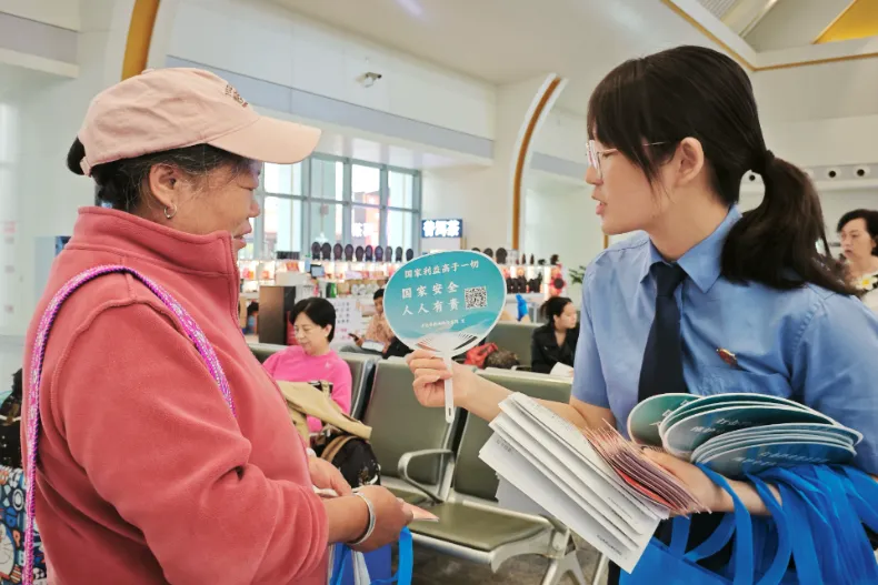 在西双版纳站,开远铁检院联合昆明铁路公安局开远公安处,深入候车厅、站前广场,通过粘贴海报、现场讲解、发放宣传手册等方式,向往来旅客普及《中华人民共和国国家安全法》等法律法规,增强当地群众尊法、学法、守法、用法意识。