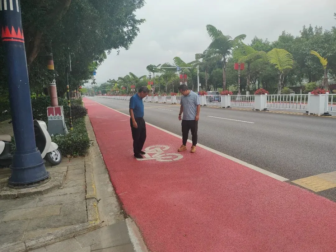 但因施工材料选取、施工工艺等问题,改造后的红色非机动车道路面防滑性能低,路面潮湿时极易导致非机动车和行人滑倒、侧翻。改造初期正值雨季,该路段接连发生多起摩托车、电动车和行人滑倒、摔伤事故,有部分群众通过微信朋友圈、抖音等网络平台反映问题,整改的呼声较为强烈。