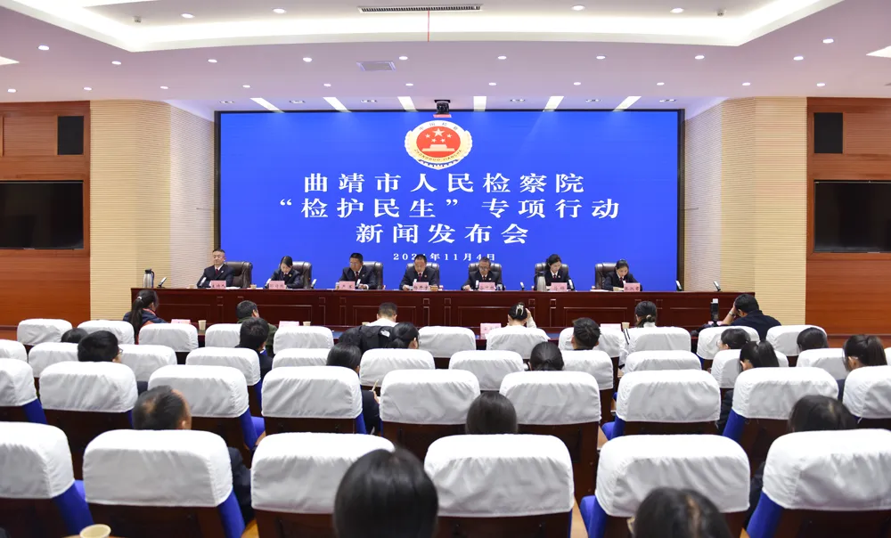 11月4日,曲靖市检察院召开新闻发布会,通报今年全市检察机关开展“检护民生”专项行动工作情况。