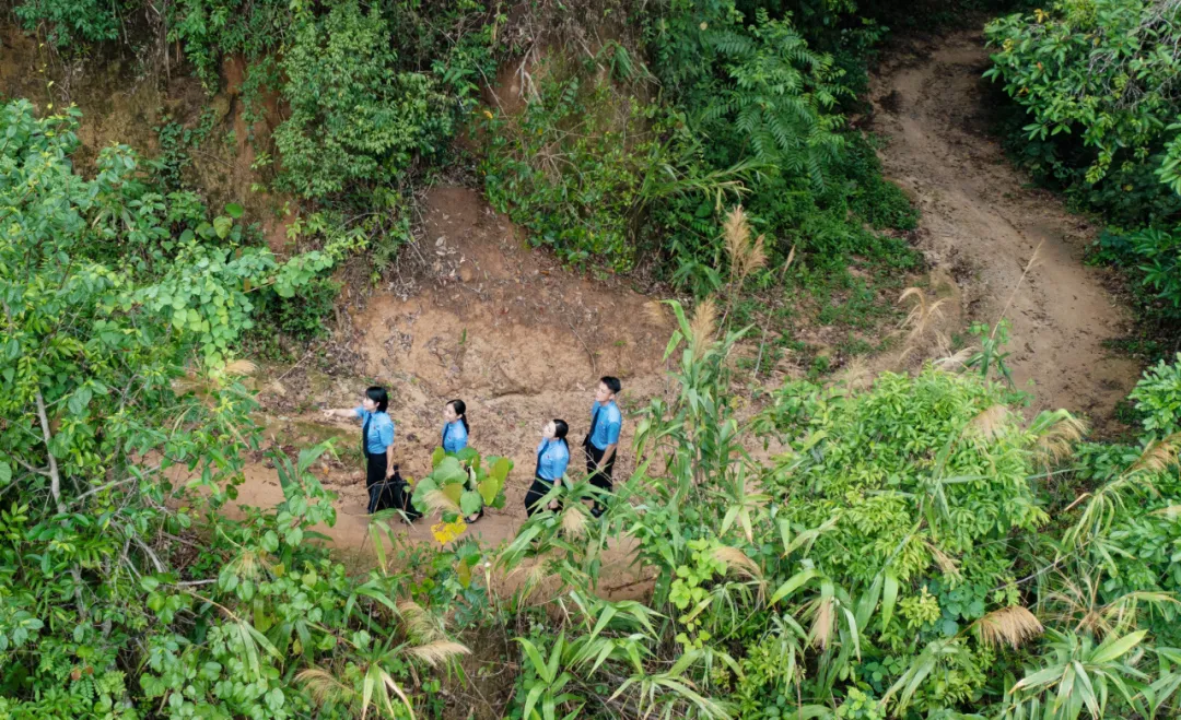 七八月的雨林最是闷热潮湿,寂静的“犀鸟谷”里雨雾迷蒙,一个身着蓝色制服、披着透明塑料雨衣的身影小心翼翼地将公文包护在身前,她习以为常地抖落雨衣帽檐上的旱蚂蟥,沿着泥泞的山路,朝着深山里的零星房屋前行……