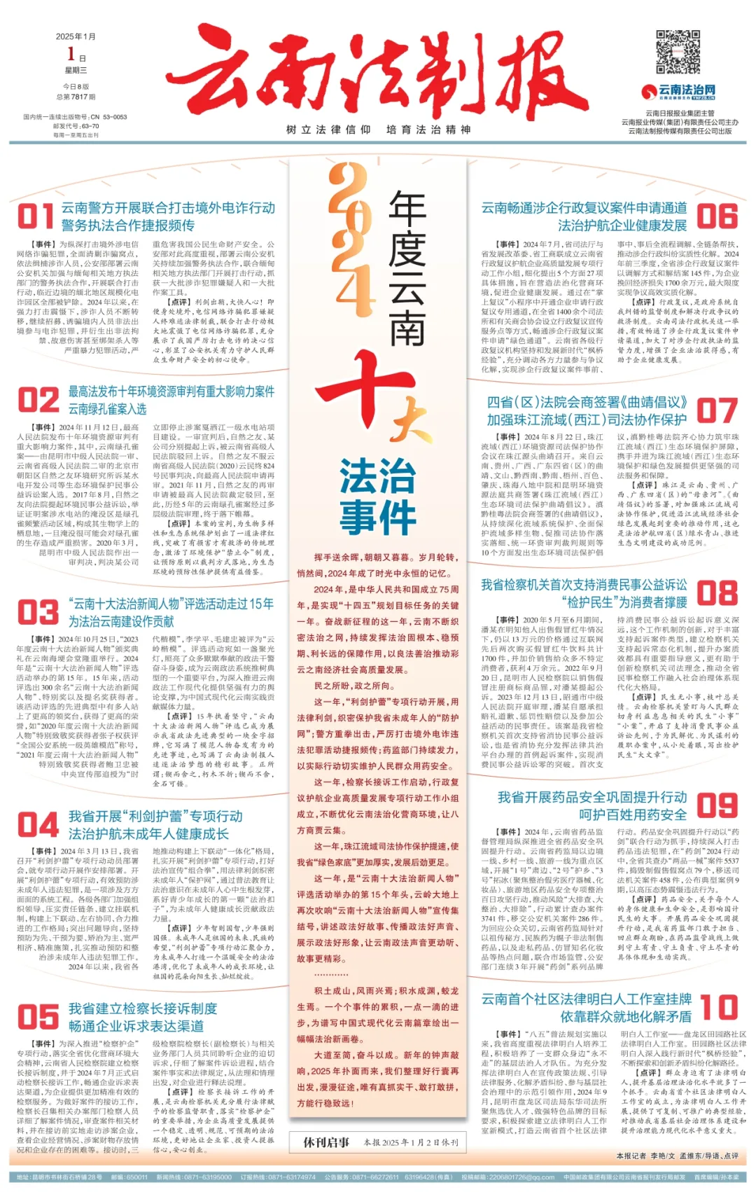 2024年,是中华人民共和国成立75周年,是实现“十四五”规划目标任务的关键一年。奋战新征程的这一年,云南不断织密法治之网,持续发挥法治固根本、稳预期、利长远的保障作用,以良法善治推动彩云之南经济社会高质量发展。