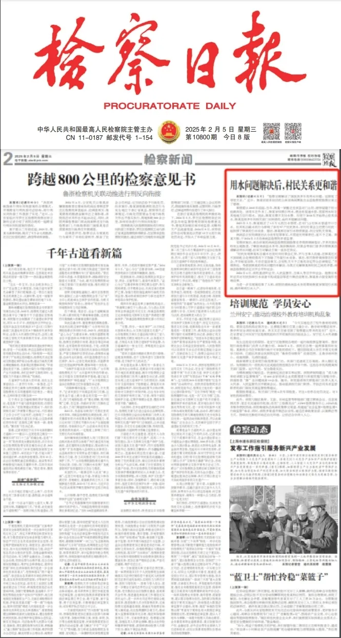 媒体关注 · 检察日报丨用水问题解决后,村民关系更和谐