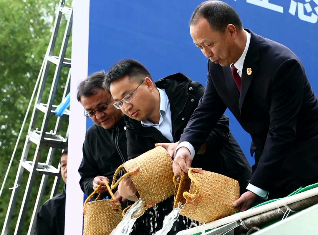今年4月,在玉龙县长江第一湾,渝北区法院将生态损害赔偿金用于增殖放流,渝北区法院、检察院和玉龙县检察院举行了渝滇生态环境司法修复执行委托签约仪式暨增殖放流活动。人大代表、政协委员,以及来自滇渝两地的法院、检察院等15家单位的人员齐聚金沙江畔,共同参与、见证了这一生态修复行动。此次活动共放流金沙江土著鱼种(金沙鲈鲤、细鳞裂腹鱼)3万尾。随着一声声清脆的入水声,一尾尾鱼苗从放流通道跃入金沙江中,激起阵阵水花。