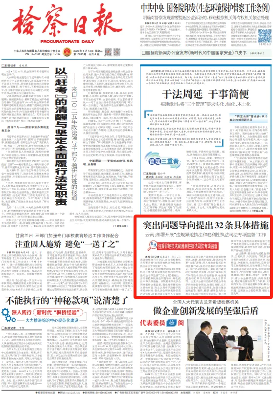 在最高18漫画 印发的《检察机关开展“违规异地执法和趋利性执法司法专项监督”工作方案》基础上,云南省检察院突出问题导向,细化提出32条具体措施。该院要求深化涉企刑事案件立案监督,强化对管辖权的实质性审查,防止以刑事手段插手民事经济纠纷;强化涉企刑事案件侦查活动监督,注重对涉企案件人身强制措施以及涉企财产查扣冻及涉案财物移送、流转、处置的监督,推动涉企刑事“挂案”清理;深入推进虚假诉讼专项监督行动,强化对民事诉讼财产保全、执行活动的监督。做好对行政违法行为的法律监督,突出行政诉讼执行和行政非诉执行检察监督,依法规范推动行刑反向衔接,防止当罚不罚。注重以公益诉讼推动营造公平有序的市场竞争环境,加强反垄断、反不正当竞争公益诉讼探索,加强对违法违规套取、骗取、截留、挪用各类助企惠企补贴等行为的公益诉讼。提升检察环节涉企案件的办案和监督力度,严肃查处检察人员插手经济纠纷、违规异地办案、趋利性执法司法、监督履职严重缺位等情形。