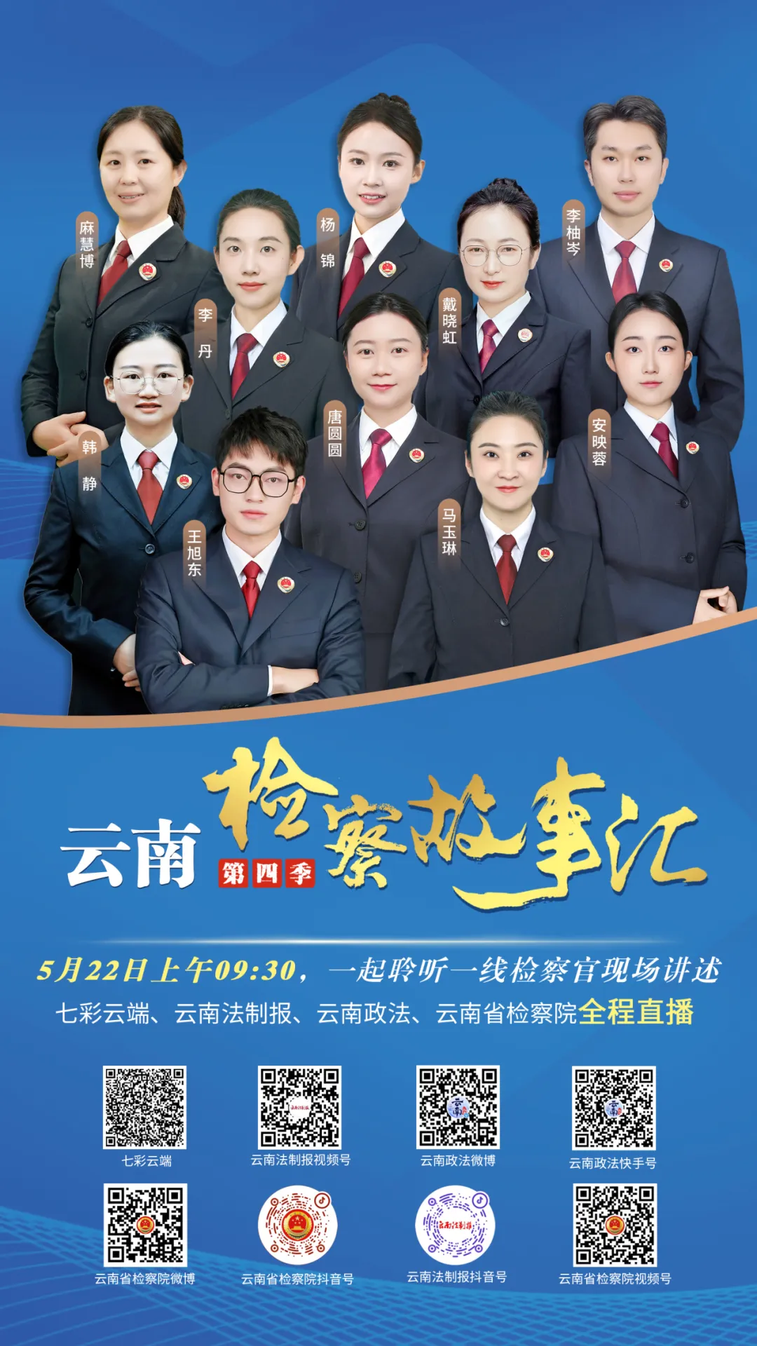 此次直播将在“七彩云端”、云南法制报视频号、云南法制报抖音号、云南政法微博、云南政法快手号、云南省检察院微博、云南省检察院抖音号、云南省检察院视频号直播,手机扫描上方海报中的二维码,关注官方账号,届时即可观看。