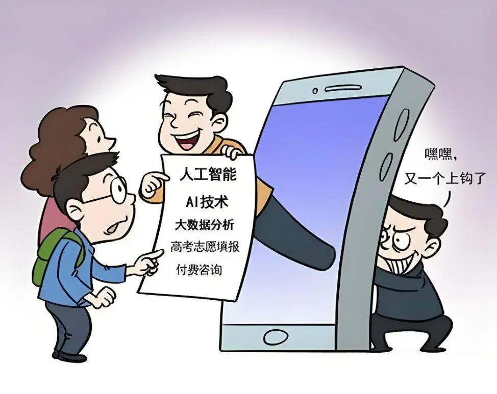 提醒:志愿填报应结合兴趣、分数、政策综合判断,不能完全依赖所谓“AI神器。同时注意甄别机构资质,防止个人信息泄露和财产损失。