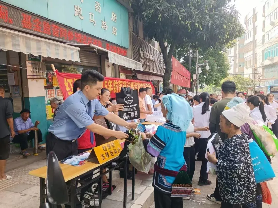 红河县检察院联合县金融办、县公安局、县法院、县司法局等多家单位开展以“守住钱袋子 护好幸福家”为主题的防范非法集资宣传活动。宣传突破单一场所限制,精准选取与群众“钱袋子”息息相关的核心地点。在银行网点,检察人员重点向理财客户发放宣传材料,讲解如何辨别正规金融产品与非法集资陷阱,强调“高收益伴随高风险”的铁律,引导其通过合法渠道理性投资。在社区,发放非法集资宣传手册,讲解“养老项目”“消费返利”等常见骗局,让手册成为群众随身携带的防骗宝典。在企业,向员工普及非法集资的识别能力和风险防范意识,树立正确的理财观念,确保自身合法权益不受侵害。